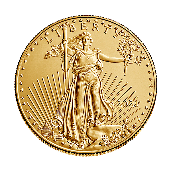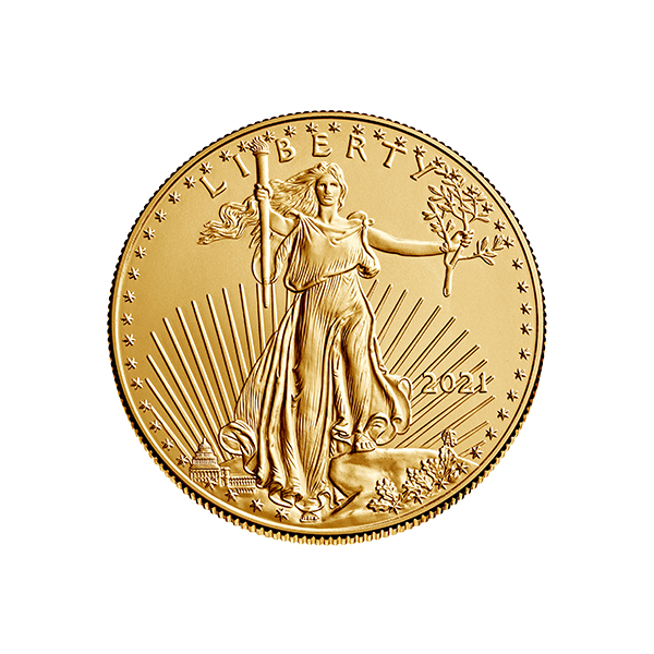 Authorized by Congress in 1985 and first minted in 1986, American Eagle Gold Bullion Coins are created according to the durable, .9167 fine or 22-karat standard established for circulating gold coins 350 years ago. 1/2 coins contain .50 troy ounces each. Picture is a likeness only.