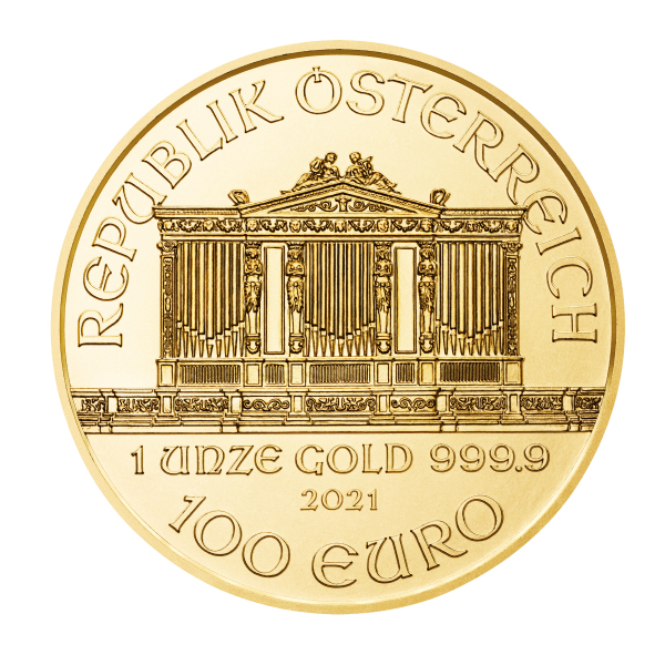 The Philharmonic bullion coins, produced by the Austrian mint are available in 24-karat gold, pure .9999, fine. Because the Philharmonic coins have worldwide recognition, they can be traded wherever major bullion coins are sold, making them very liquid. Picture is a likeness only.